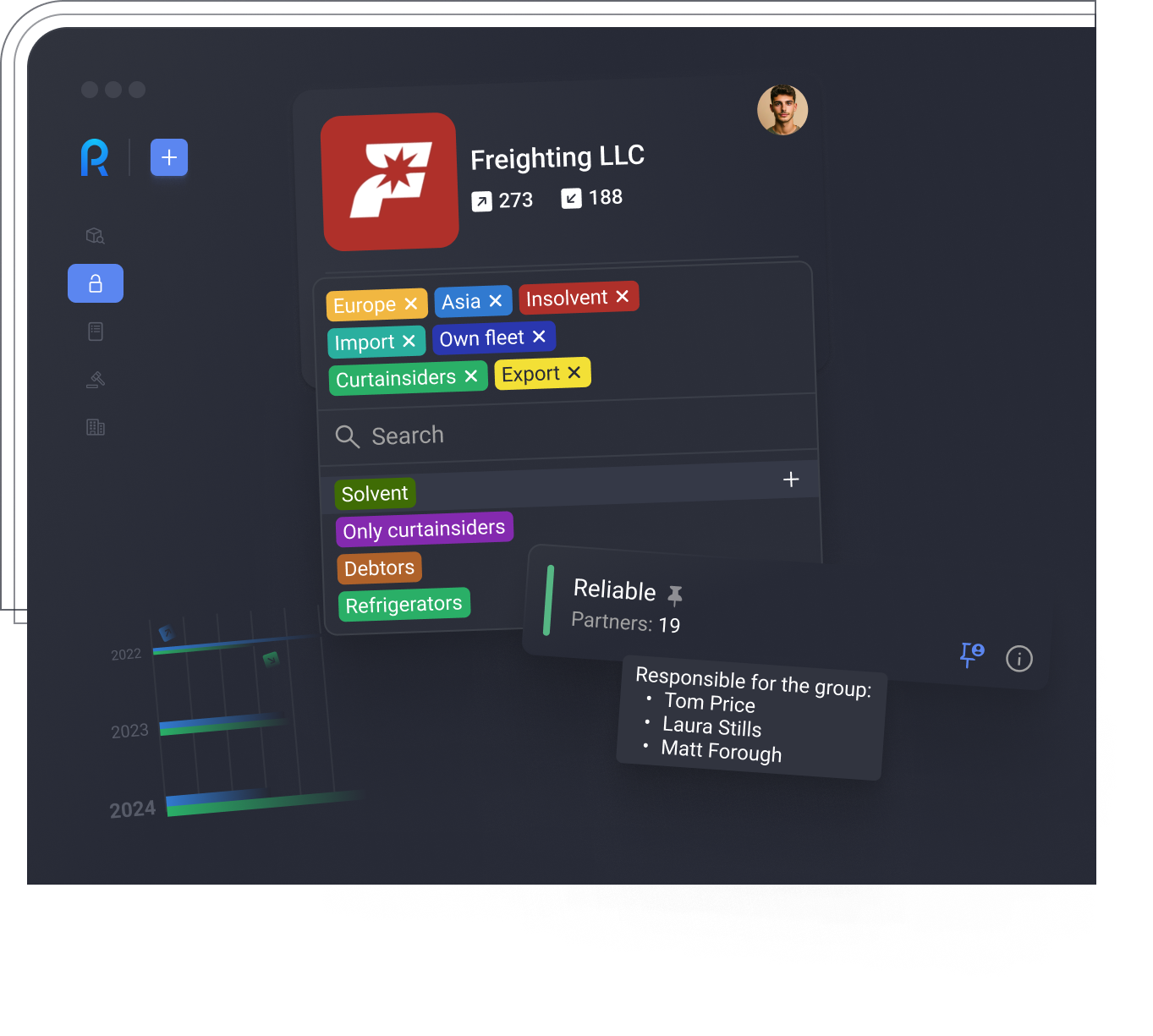 - Consistency without expensive integrations. The vast majority of carriers represent small and medium-sized businesses that will not integrate with individual customer systems. It is expensive, time-consuming and risky for them. Therefore, Roolz becomes a place of centralisation and unity for many of them. Why even spend money on separate integrations with 20 customers when you can work through Roolz without any integrations?