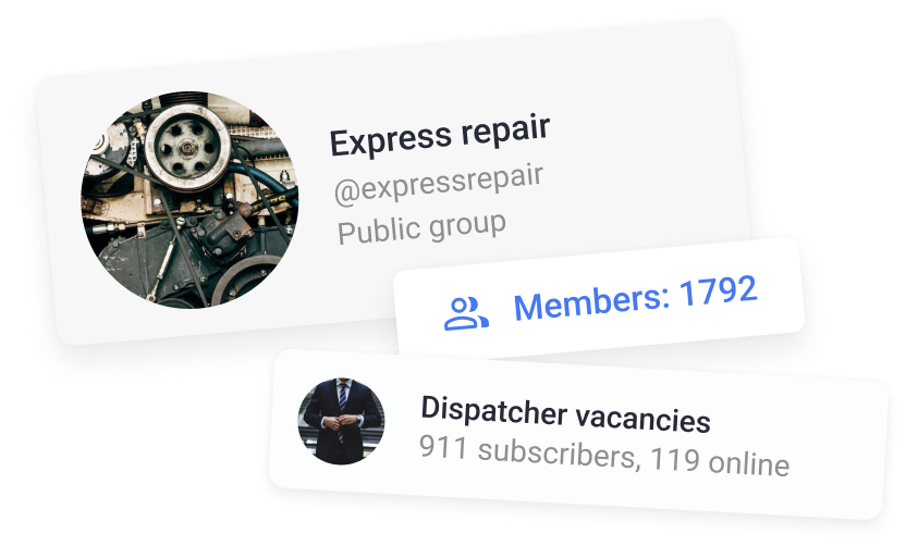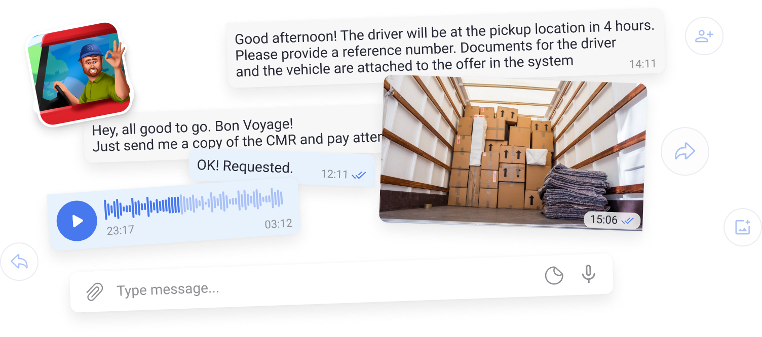 Twórz czaty grupowe i dołączaj do nich, aby wspólnie omawiać zadania. Współpracę można znaleźć zarówno w grupach, jak i w całych społecznościach specjalistów ds. logistyki.