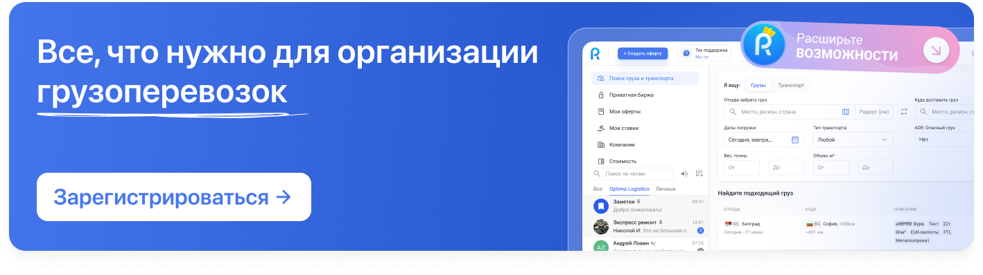 - Встроенный бизнес-мессенджер. Все коммуникации по сделкам — внутри одной системы. История переписки, файлы и документы хранятся в контексте конкретной перевозки;