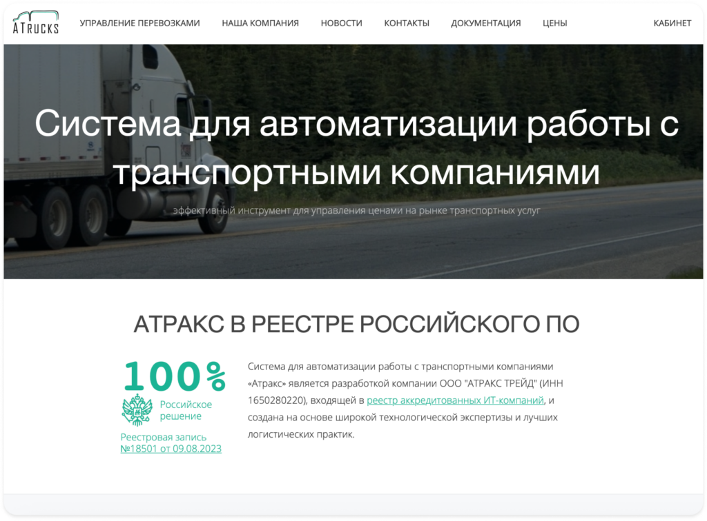 Категория ПО: система для автоматизации транспортной логистики