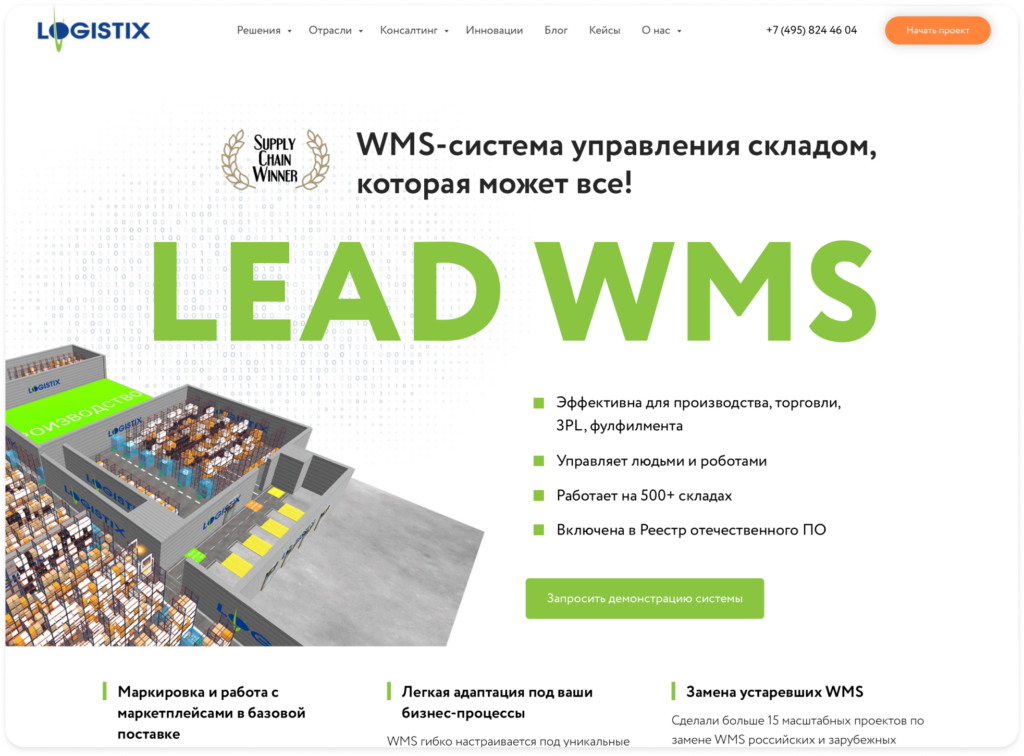 С помощью ПО реализовано более 15 масштабных проектов по замене российских и зарубежных WMS, что позволило компаниям повысить уровень автоматизации и заметно улучшить эффективность складских процессов. Lead WMS одинаково эффективна для производственных предприятий, торговли, 3PL-операторов и фулфилмент-центров. Платформа легко масштабируется под разные форматы бизнеса и интегрируется с ERP, TMS и другим корпоративным ПО.