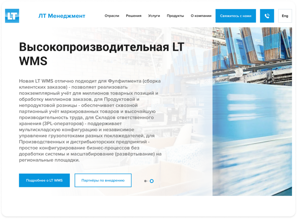 LT WMS — современная платформа для управления складом, ориентированная на сокращение издержек и повышение производительности. Решение разрабатывалось с учётом международного опыта и требований российского рынка, поэтому подходит для компаний разного масштаба — от дистрибьюторов до крупных производственных холдингов.