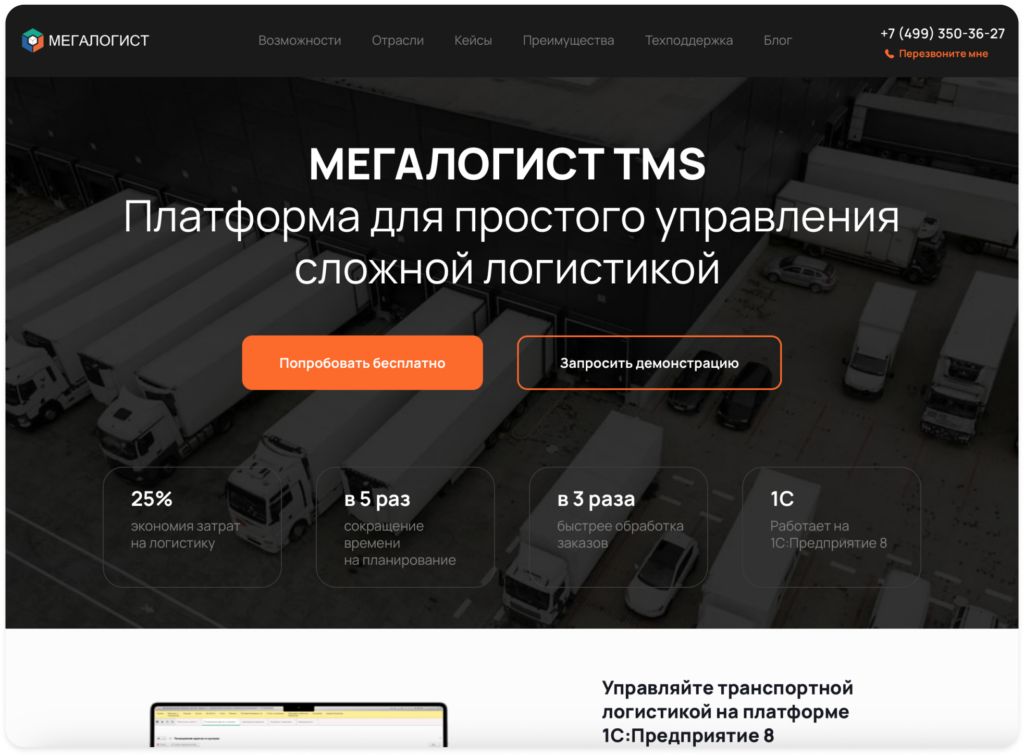 Мегалогист — TMS-система с широкими возможностями для автоматизации транспортной логистики. Программа работает на базе 1С: Предприятие 8. Для оптимизации маршрутов в системе предусмотрены интеграции с такими программами как Яндекс.Маршрутизация, Maxoptra и другими отраслевыми решениями. За счет подключения продуктов 1С и партнерских сервисов система закрывает максимум потребностей логистического бизнеса.
